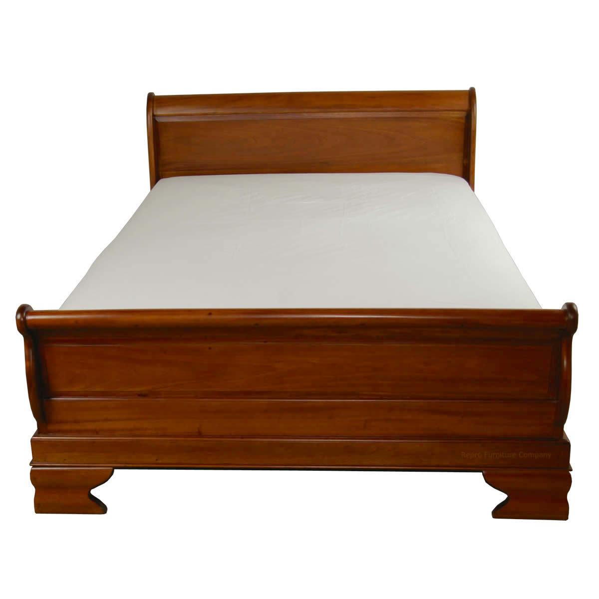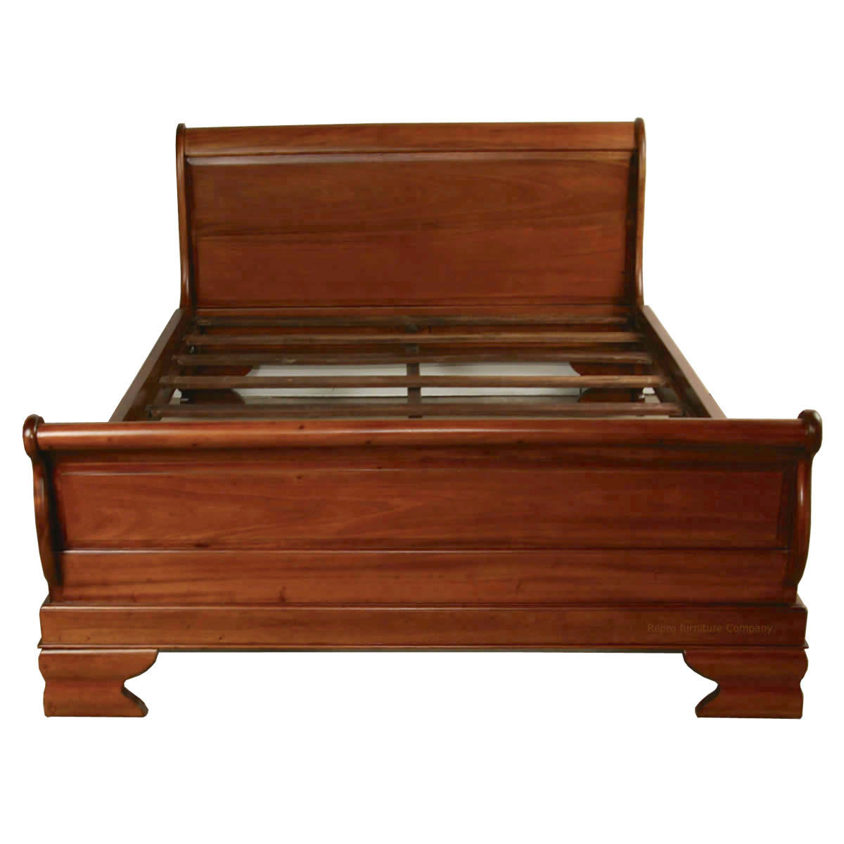 Mahogany double Sleigh Bed. Delivered semi dismantled for easy access, the bed is supplied complete with slats for the base. Assembly is very straightforward.